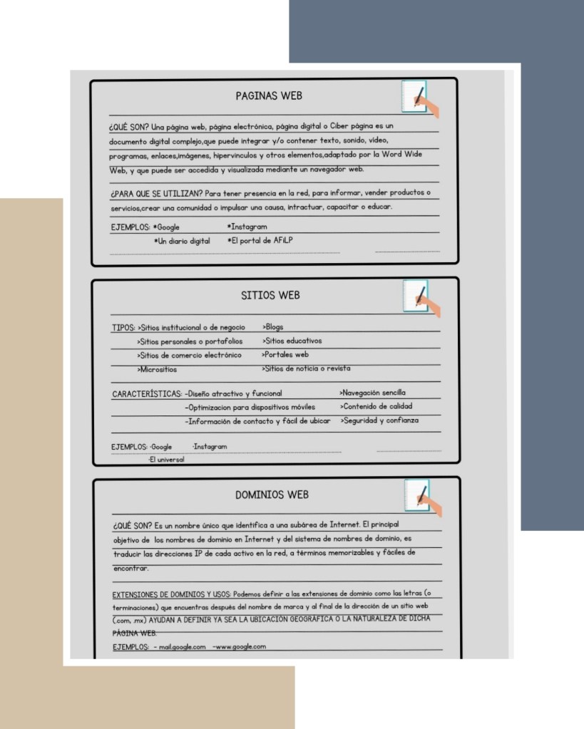 Sitios web, páginas web, Dominios web